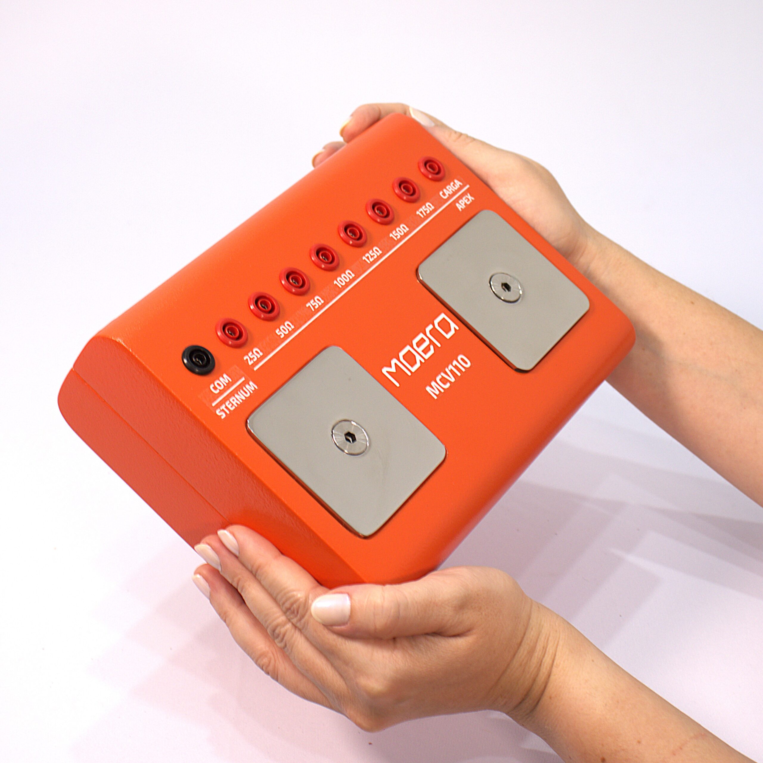 O Módulo de Cargas Variáveis MCV100 é um opcional que possibilita a variação da resistência interna do analisador de desfibrilador JAU200 para testes com desfibriladores, cardioversores e DEAs. A resistência padrão do JAU200 é de  50Ω, usualmente utilizada em testes preventivos e pós manutenção. Porém, para testes específicos da norma ABNT NBR IEC 60601-2-4:2014, que aborda prescrições particulares para segurança de desfibriladores cardíacos para fabricantes destes equipamentos, é necessário que a carga interna do analisador varie de 25Ω a 175Ω. Em conjunto com o analisador ele possibilita a realização dos testes com as cargas de 25Ω, 50Ω, 75Ω, 100Ω, 125Ω, 150Ω e 175Ω.